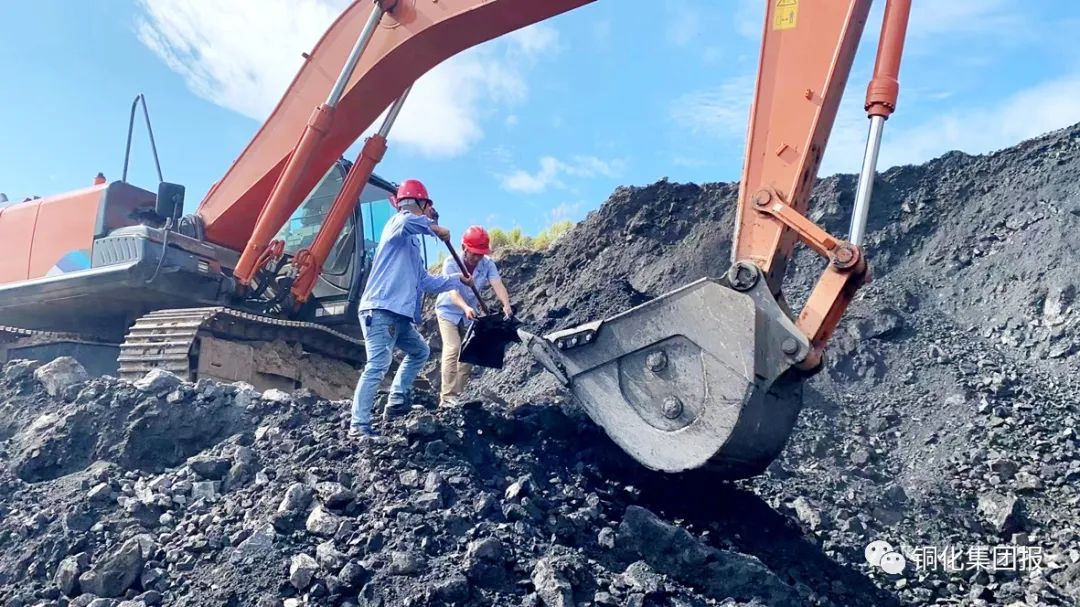 7月12日,在新桥矿业公司露天矿销售中心发货现场,销售员冒着高温酷暑取矿样。
