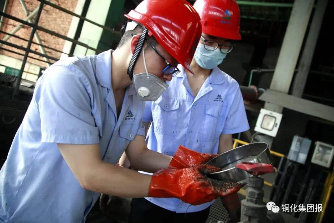 图②:青工在监测矿浆浓细度。