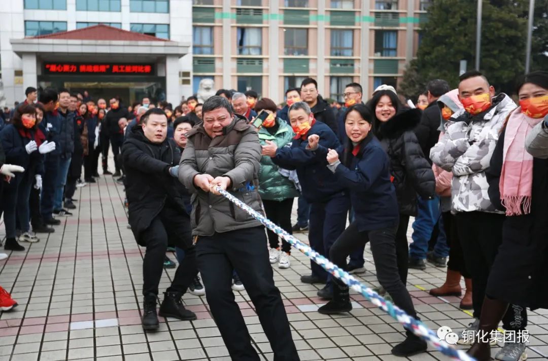 1月7日上午,新桥矿业公司办公楼前加油声、呐喊声一浪接一浪,该公司2022年度“凝心聚力 挑战极限”员工拔河比赛火热进行。