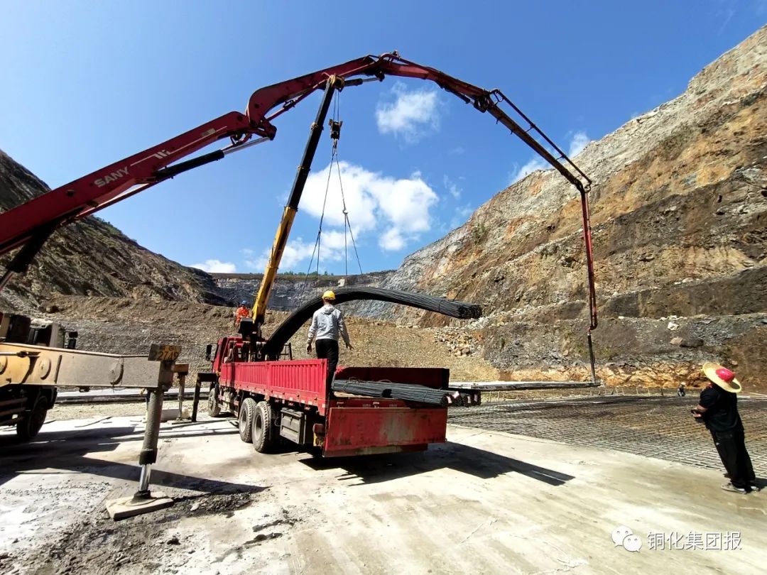 近日,新桥矿业公司露天采坑生态修复工程施工现场,施工人员正在吊装采坑打底防渗钢筋材料。据了解,为助力“无废城市”建设,打造绿色矿山,该公司投资1.8亿元对露天采坑进行生态修复,将有效推进我市大宗固体废弃物减量化、无害化、规范化安全处置,为矿山提供新的经济增长点。