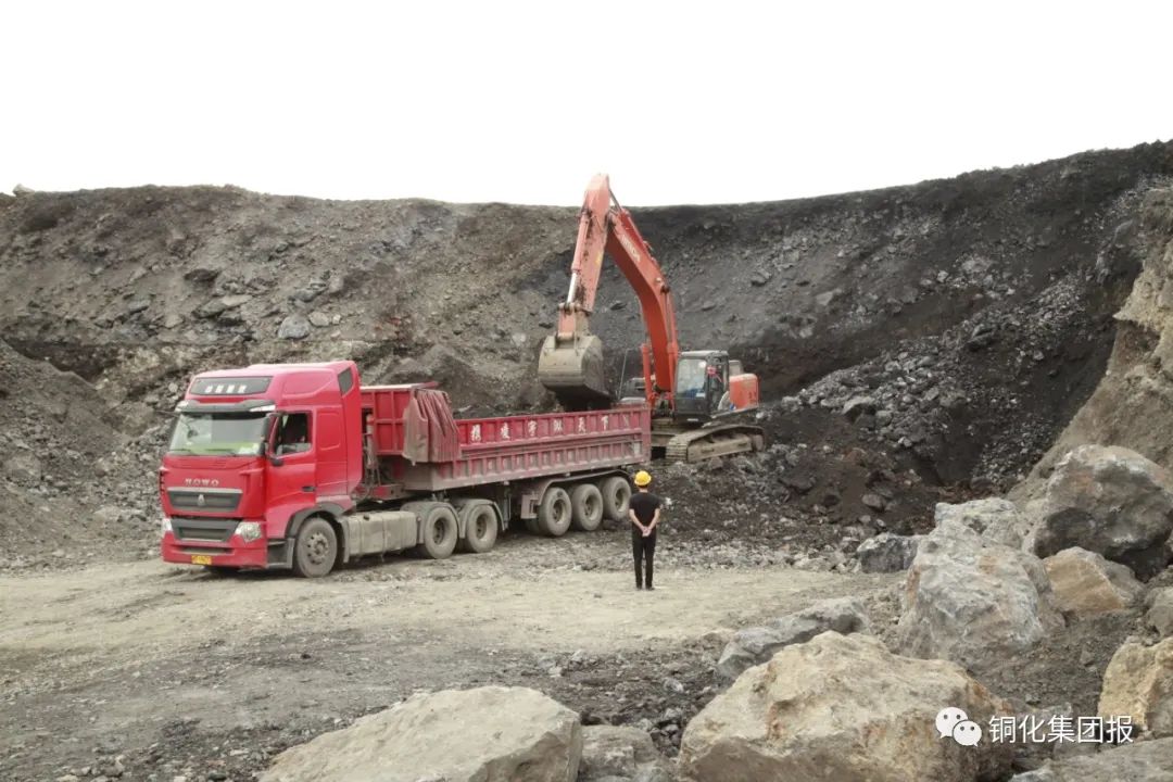9月21日,新桥矿业公司露天矿排土场正165米平台,挖掘机正在进行土石分离作业,分离出来的土将运往正210米平台,用于排土场平整、复绿。
