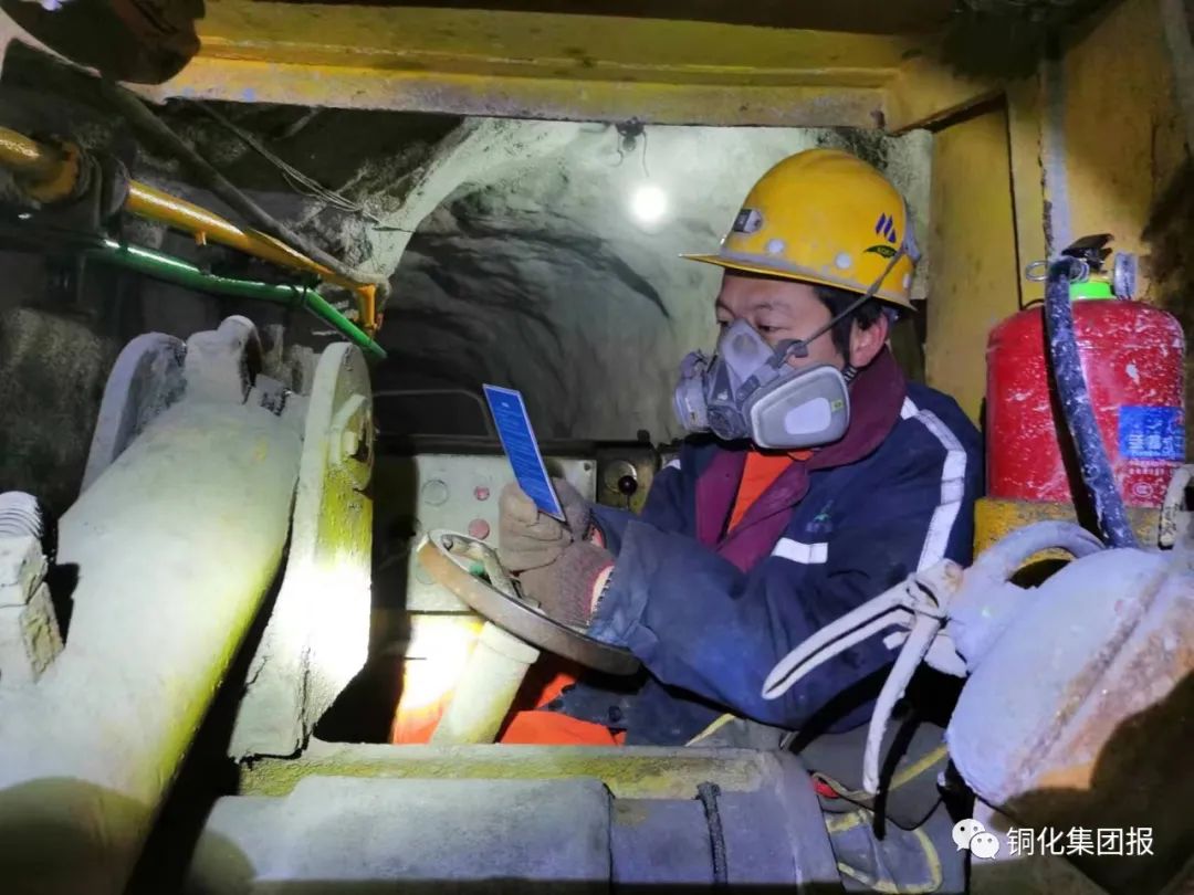 下图:铲运机司机蒋继能在作业前阅读风险识别卡。